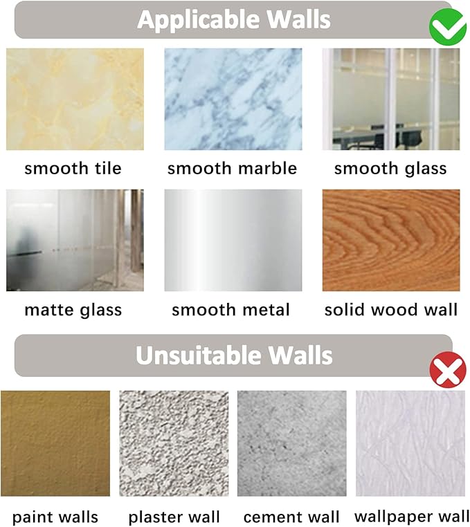 - 【WIDELY APPLICATION】ideal for a variety of smooth hard surface like tile, glass, wood, plastic, stainless steel, metal, marble, etc. Lime wall, painted wall, drywall and wallpaper with textures are not advised, or it will fall off or damage your wall.