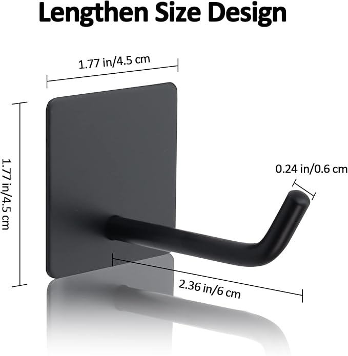 - 【Lengthen Design】Compared with normal adhesive hooks, our sticky hooks rod is lengthened to 2.36in/6cm, giving you more space for hanging more items or more different kinds of stuff. Extended long handle, ending with perfect bending, and prevents items from slipping off.