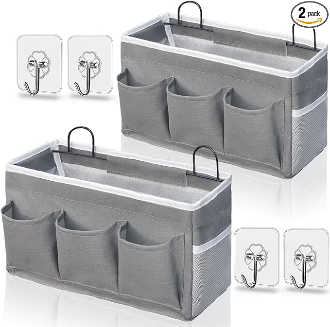- 【Wide To Use】The hanging organizer works great on any chair, bedside, door, or wall that you can hang under the desk, over the cabinet door, or beside the closet shelf. It is suitable for Bedroom, Bathroom, Office, RV Camper, and more. All rooms will become more tidy and comfortable with it.