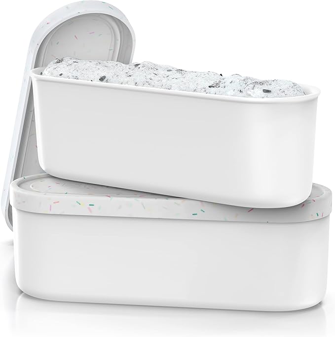 BALCI Ice Cream Containers - 2 Quart Ea. (Set of 2) - Premium Reusable Freezer Storage for Homemade Ice Cream Tub for Sorbet, Frozen Yogurt - Flexible Silicone Lids, Long Scoop - White With Sprinkles