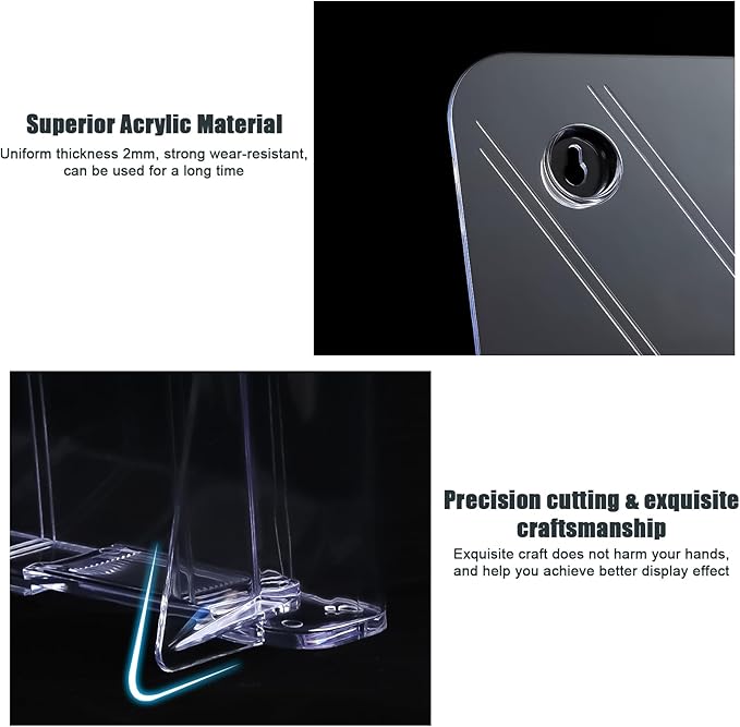 - 【Sturdy and Durable】This desktop display stand uses thick and sturdy material, with a uniform thickness of 2mm, which enables it to have long-term wear resistance and can be used for a long time. The edges and corners are strictly polished, smooth, and flat without hurting the hand. Exquisite workmanship and precise cutting make it have a good feel and texture.