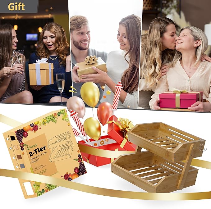- PREMIUM QUALITY : fruit basket 2 tier is well-constructed with sturdy and durable bamboo material, which gives it an elegant look that complements any modern basket display, 2 tier fruit basket for kitchen counter or 3 tier fruit basket for counter available