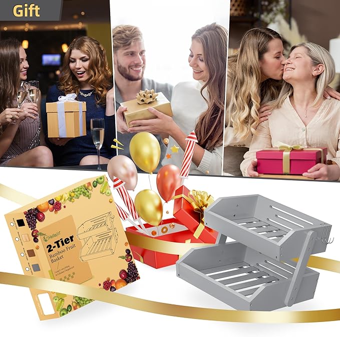 - PREMIUM QUALITY : fruit basket 2 tier is well-constructed with sturdy and durable bamboo material, which gives it an elegant look that complements any modern basket display, 2 tier fruit basket for kitchen counter or 3 tier fruit basket for counter available