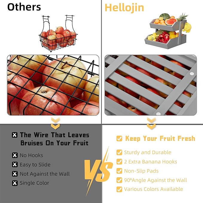 - DOUBLE BANANA HOOKS : Bamboo fruit basket with banana hook keep the bananas separate from the rest of the fruits and veggies prevent them from getting bruised