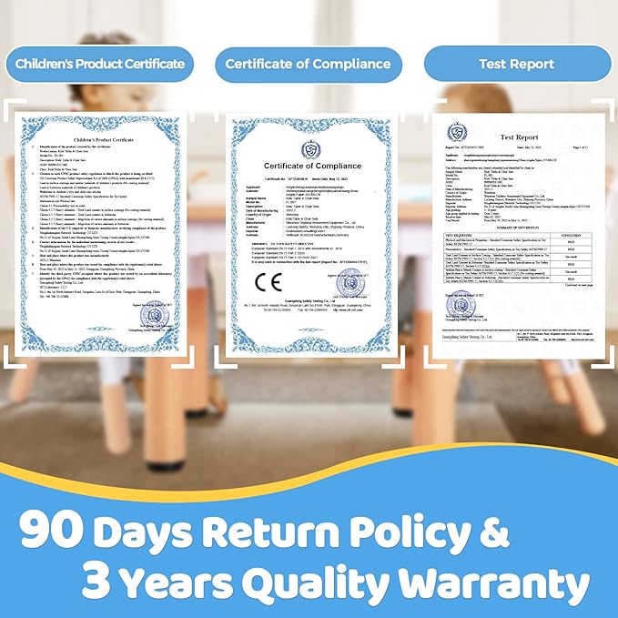 - 【CPC & CE certified, Safe & Stable】We focus on every detail to ensure kids' safety. FUNLIO toddler tables and chairs are CPC and CE certified. The set is made of MDF and PPC plastic, healthy materials for children to touch. The items are well made and quite smooth, without any burrs. Rounded table corners keep the child safe. A curved seat back is good for a child's spine while sitting. Adjustable non-slip table and chair feet and the 220lb weight-bearing capacity help it stand stable on the ground.