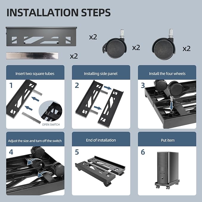 - Sturdy Pc Stand: The pc tower stand is made of high quality metal steel pipe and upgraded material ps panel, with strong load bearing capacity, withstands 88 lbs and stable structure, which can ensure the safety of the computer tower. quick assembly without tools