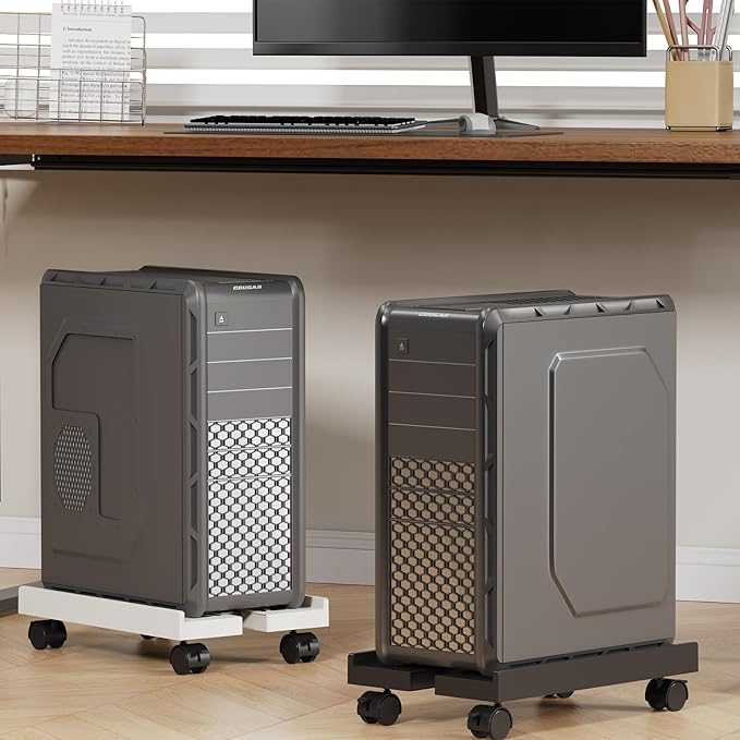 - Easy Movement: Four 360° rotating universal wheels can move the computer tower to the position you want, making it easy for you to move to clean the ground. and two of the wheels can be locked to keep them stationary when needed. When you need it, it can easily go under your computer desk or printer stand and stay in place