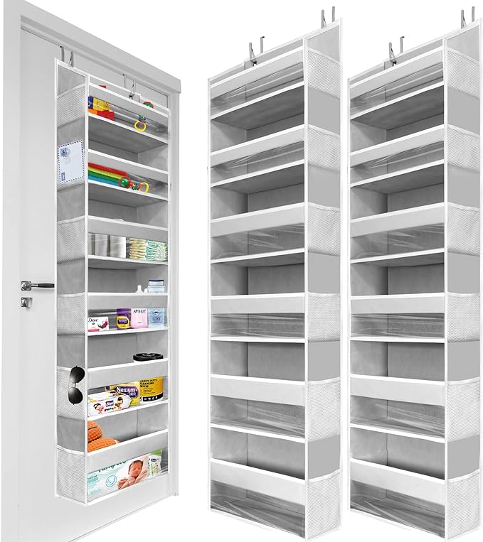 - 🏡12 Extra Mesh Side Storage: With our back of door storage & over the door shoe organizer, there's no such thing as too much storage space! Our behind the door storage solution goes above and beyond with 12 additional mesh pockets, perfect for storing small items such as your phone chargers, keys, thermometers, remote control, and many more. These over door organizers and storage not only provides ample space but also works as an that prevents mix-ups allowing you to retrieve your items easily.