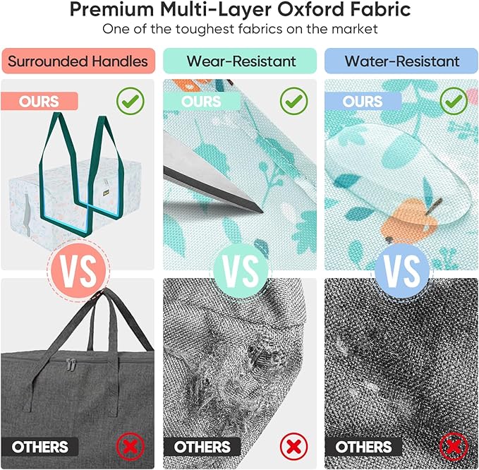 BALEINE Extra Large Storage Tote with Zippers & Carrying Handles, Heavy-Duty Oxford Fabric Moving Bags for Laundry, Space Saving, Storage, Spring Stroll