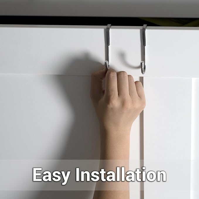 - Wide Use - From kitchen utensils to closet essentials, these over cabinet hooks offer endless possibilities. Hang your bags, clothes, towels, etc. Transform any space into an organized haven.