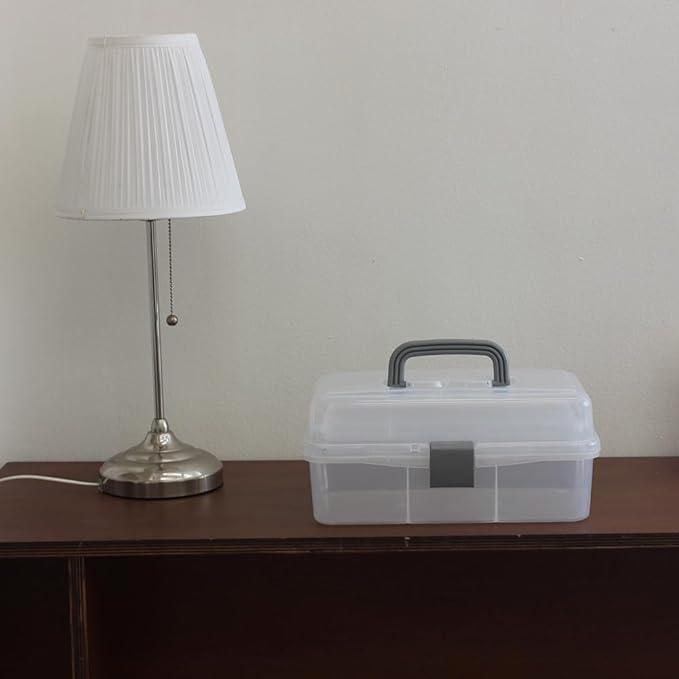 BangQiao 2-Tier Trays Clear Gray Plastic Storage Container Organizer Box, Multipurpose Portable Carrying Case with Latch Lock and Handle for Art, Craft, Sewing Supplies, First Aid, Makeup