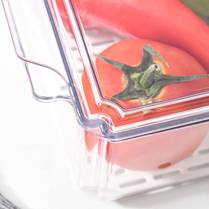 - These stackable bins are perfect for organizing various items such as fruits, vegetables, or dairy products. They feature a slide-out design, making it effortless to access items stored at the back.