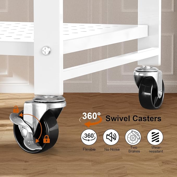 - 360°Movable Shelves for Storage: Movable 4 shelf storage rack has 4 upgraded wheels (2 wheels have locking function). You can move the Holds 352 pounds kitchen shelves organizers and storage to any position you want, and move quietly.