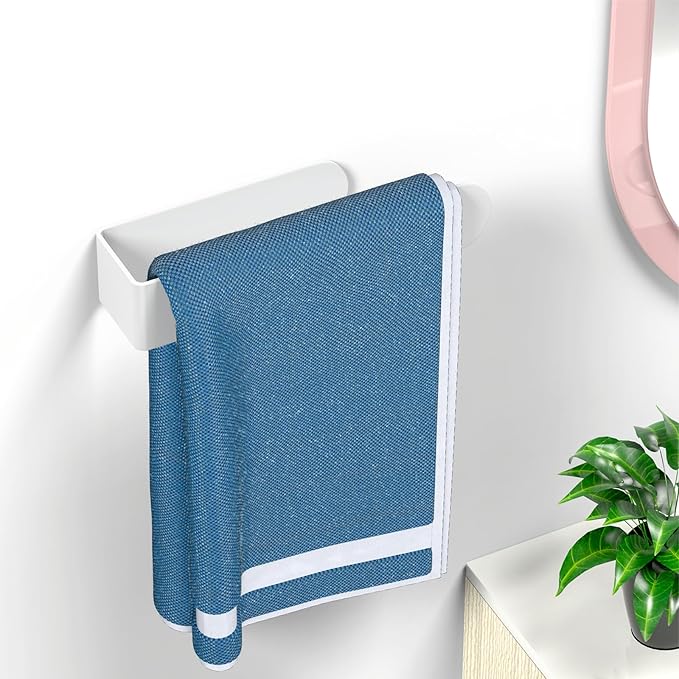 HUFEEOH Adhesive Hand Towel Holder, Kitchen Towel Rack Towel Bars Wall Mounted, Stainless Steel Bath Towel Holder for Bathroom Hotel Kitchen (8 inch, White)