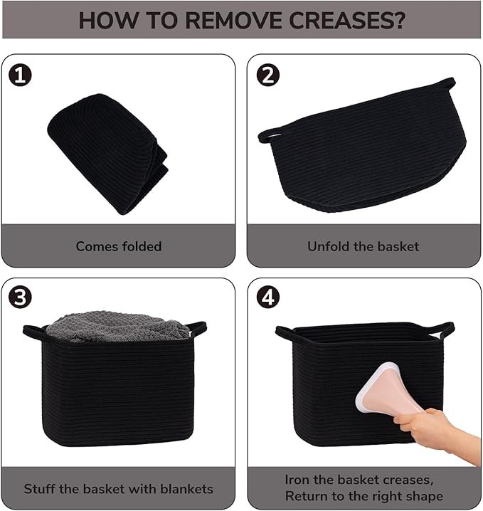 - Note. These storage bins are folded for shipping. Fill it with a towel or blanket and it will quickly regain its elegant shape. Ironing is a good idea for restoring wrinkles. Also, you can fold it into a flat shape for easy storage when not in use