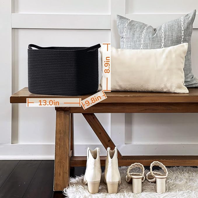 INDRESSME Woven Storage Basket, Black Baskets for Gifts, Nursery Toy Basket, Rope Baskets for Organizing, Shelf Storage, Multi-Purpose Organizer for Shoes, Clothes, Towels, Laundry 13 x 10 x 9 Inches