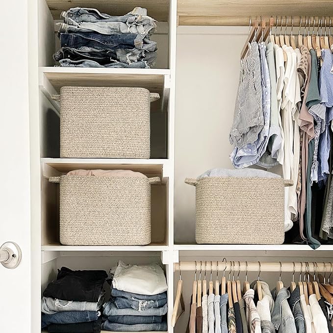 - Dual Handle Design. The size of this storage basket is 13 * 10 * 9 inches, suitable for storing small items on shelves, bookcases, wardrobes, desks, and TV cabinets. This basket has two handles designed for easy access