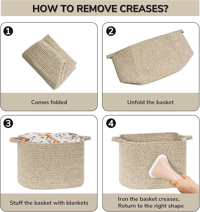 - Note. These storage bins are folded for shipping. Fill it with a towel or blanket and it will quickly regain its elegant shape. Ironing is a good idea for restoring wrinkles. Also, you can fold it into a flat shape for easy storage when not in use