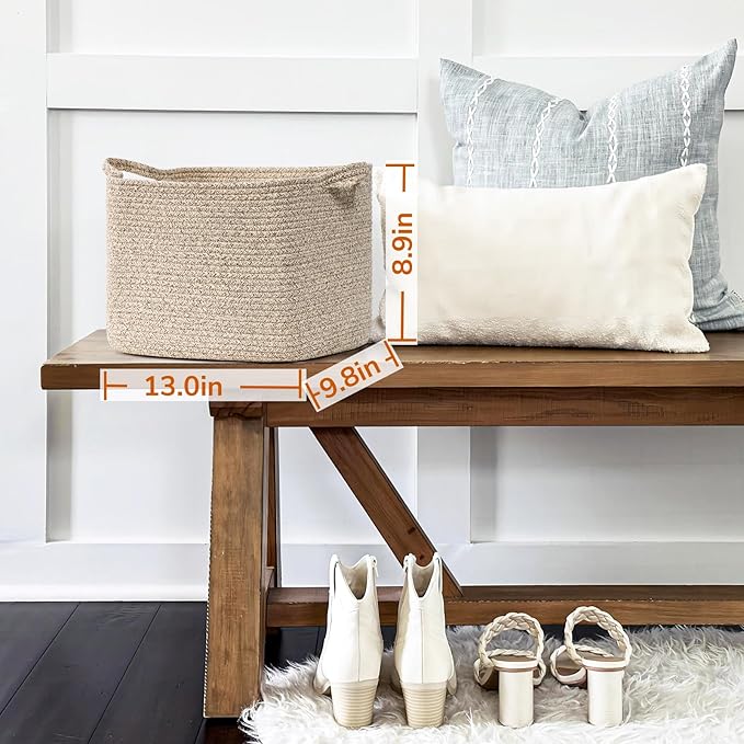 INDRESSME Dog Toy Basket, Woven Basket for Blankets, Baby Gift Baskets for Nursery Large Shelf Bin for Towels, Books, Rectangle Storage Baskets for Organizing, Brown, 13 x 10 x 9 inches