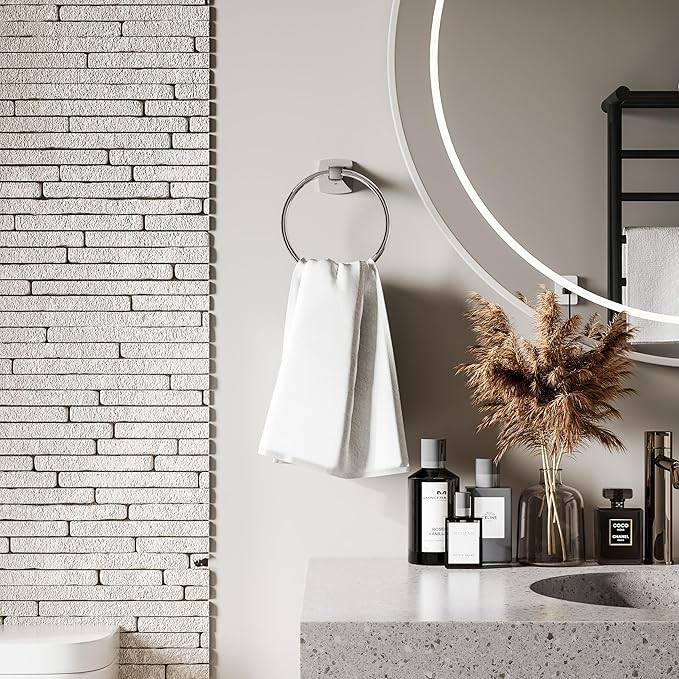 - 【For Small Spaces】This sturdy towel ring wall mount leaves enough space for damp towels to dry quickly instead of taking much space. These towel rings are ideal for bathroom, bedroom, guest room, kitchen, etc.
