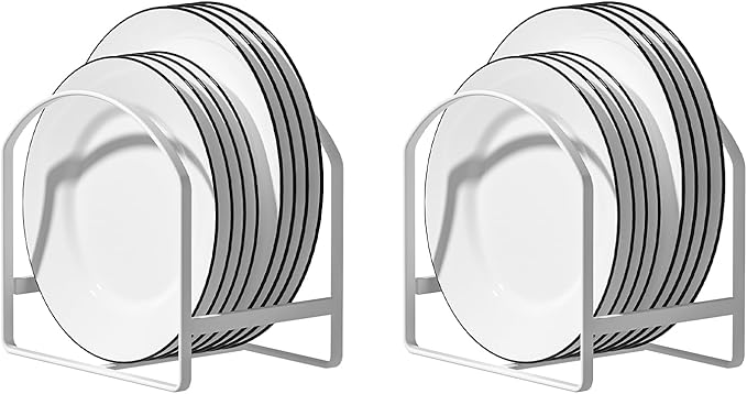 - Wide Application: This handy kitchen cabinet plate holder organizer rack pack is a great way to add a modern touch to your kitchen. It's perfect for homes, restaurants, RVs, and campers to keep your dinner plates and dishes organized. Plus, it can be a small dish drainer or drying rack, and even work as a dinner plate display stand.