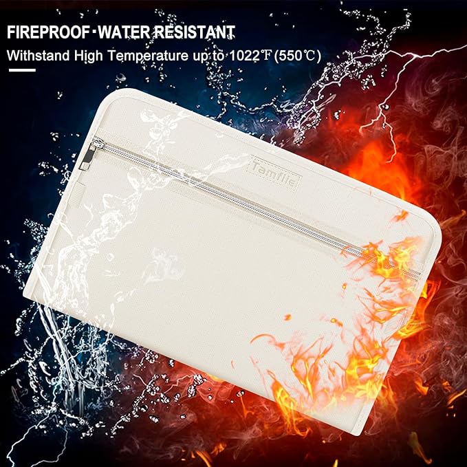 - [Fireproof and waterproof]: In the document organizer of fire, extend the time that the flame burns to the file, and buy time for rescue. In rainy conditions, you don't have to worry about the file being wet by the rain. It cannot be completely fireproof and waterproof. Please do not immerse the folder in the water. Water will enter the interior through the gap.