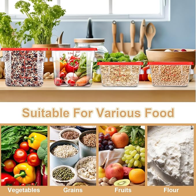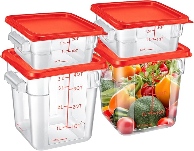 - Package Information: you will get 4 pieces of food storage containers, there are 2 kinds of capacity, approx. 2qt and 4qt, the lid is red; Sufficient quantity will meet your using needs, and you can share them with your family
