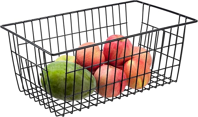 iPEGTOP Wire Storage Freezer Baskets, Set of 6 Large 15.4" Farmhouse Organizer Storage Bins Fridge Basket Rack with Handles for Kitchen Cabinets, Pantry, Office, Bathroom Organization - Black