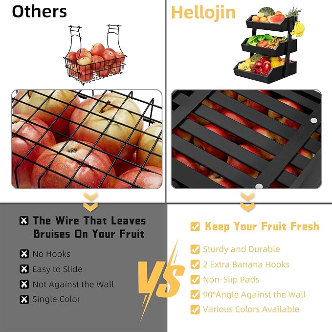 - DOUBLE BANANA HOOKS : Bamboo fruit basket with banana hook keep the bananas separate from the rest of the fruits and veggies prevent them from getting bruised