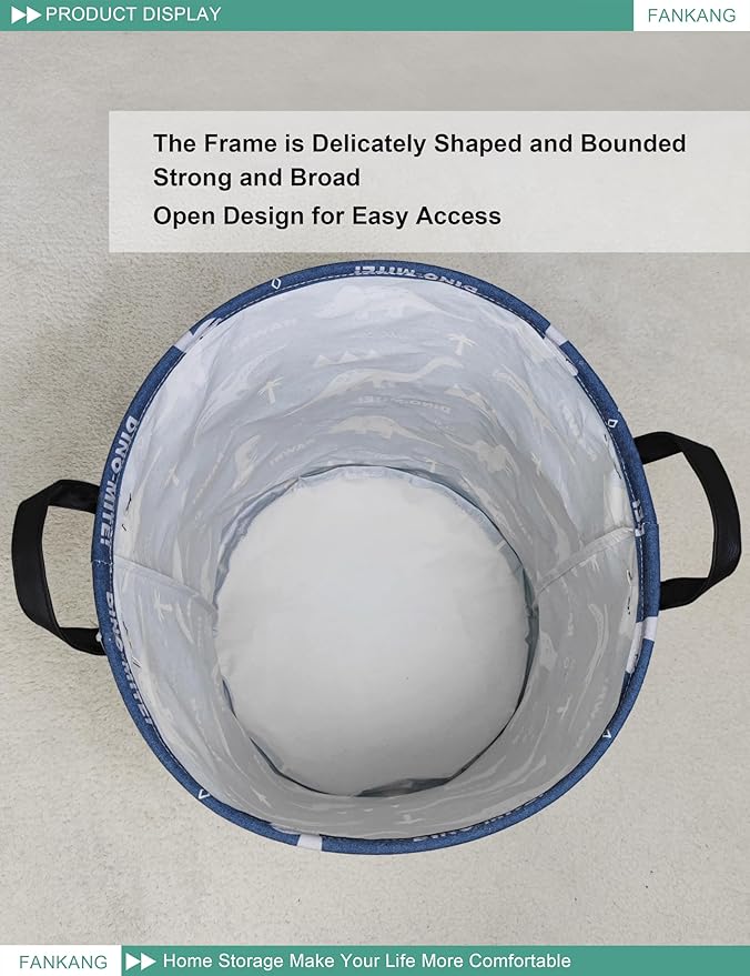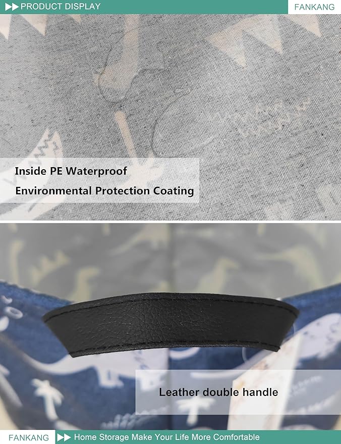 FANKANG Storage Basket, Nursery Hamper Canvas Laundry Basket Foldable with Waterproof PE Coating Large Storage Baskets for Kids Boys and Girls, Office, Bedroom, Clothes,Toys(Blue dinosaur)