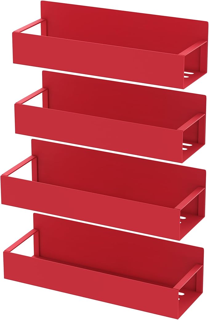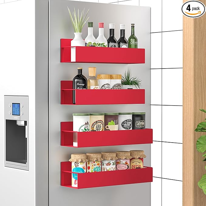 4 Pack Magnetic Spice Storage Rack Organizer for Refrigerator and Oven, Red Fridge Organizers and Storage