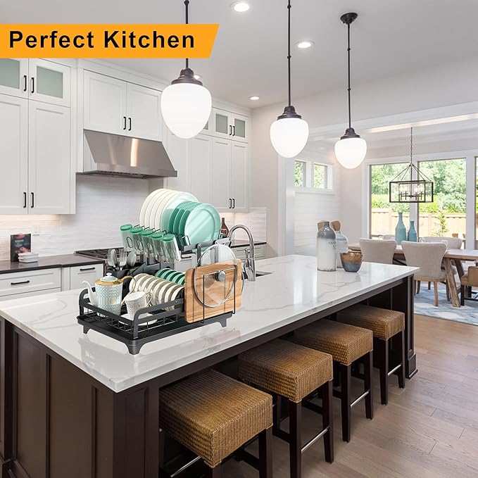 - 【Heavy-duty & Rust-proof Metal Dish Rack】-Heavy metal material, durable and can use long time. Rust resistant coating prevents rusting on the dish drying storage rack, providing you with a healthy and hygienic kitchen helper