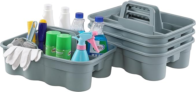 4-Pack Plastic Cleaning Caddy with Handle, Plastic Cleaning Tool Caddy, Gray