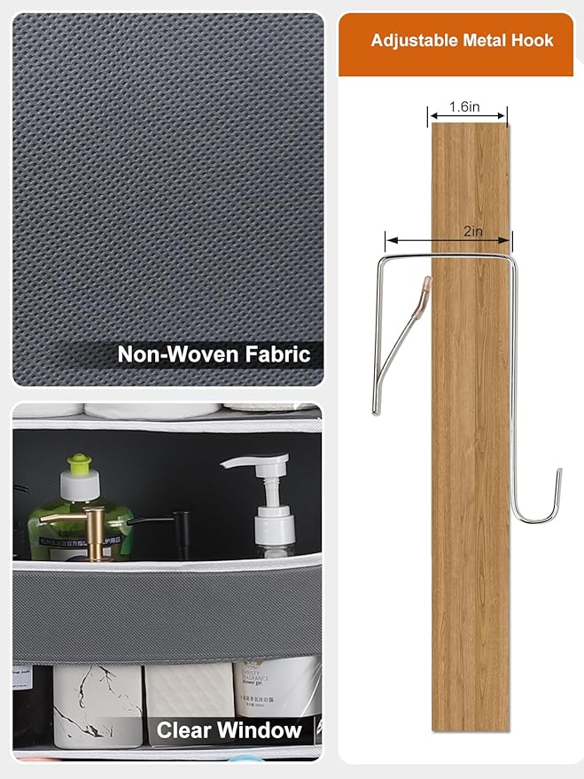 - Upgraded Design, No Deform: 4 large pockets are reinforce with 2mm thick cardboard and fiberglas, and the enclosed sides joined together with the large pockets, making this Bedroom hanging organizers hold its shape well, and eqquiped with three metal hooks holding up to 55lb weight capacity. Ensures no tilting or falling down even when placing heavy items