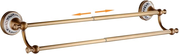 Antique Bronze Brass Double Towel Bar,Adjustable 15.5 to 27.5 Inch Bath Towel Bar Rack for Bathroom Towel Holder, Wall Mounted Bathroom Hardware Accessories,Porcelain Design
