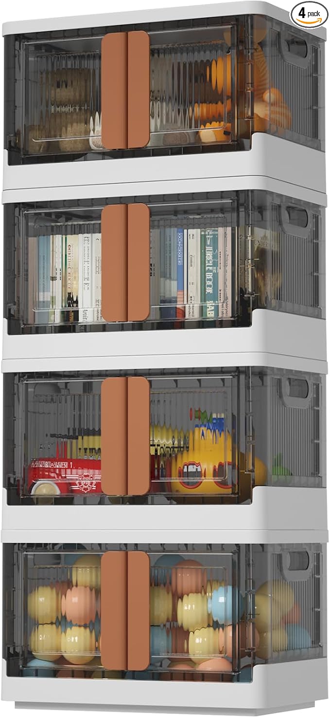 HAIXIN Plastic Storage Containers, Stackable Closet Organizers and Storage, Folding Bookshelf for Bedroom, 8.4 Gal Collapsible Laundry Organizer, 4 Pack