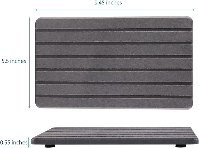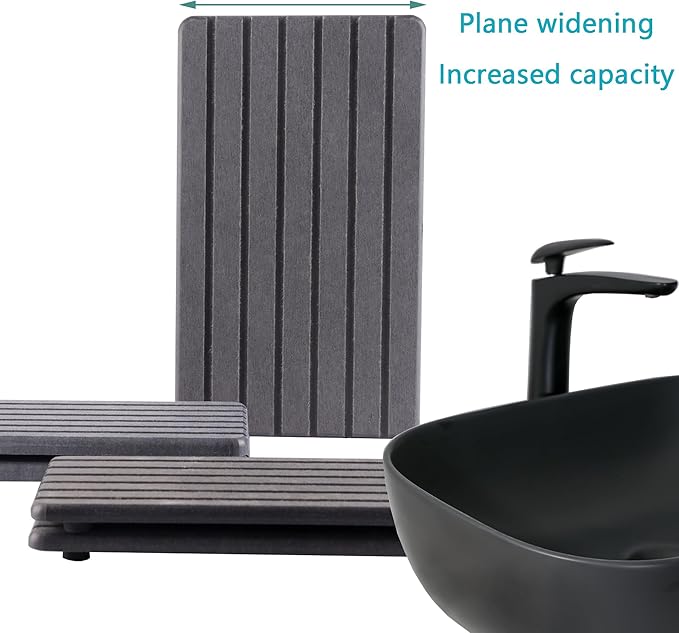 - Made from natural Diatom mud and plant fiber, small holes within diatomite enable it have amazing water absorption. They could absorb water and gets dry in a few minutes. It makes the Bathroom Counter top more dry and tidy.