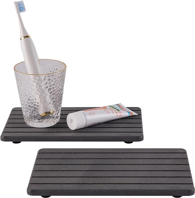 - Perfect Design Created for the Modern Home, to make life clean, comfortable and orderly. Suitable to be used as absorbent mats for soaps / cups / soap bottle / dish sponge / make-up bottles, and anywhere you need to absorb water quickly and keep the table / countertop surface dry.