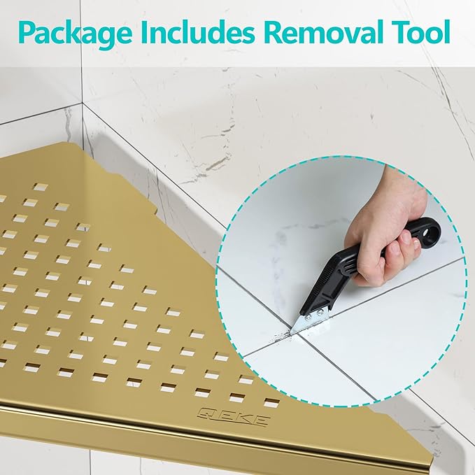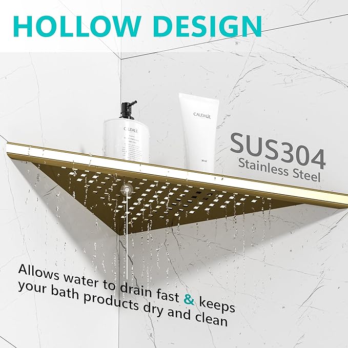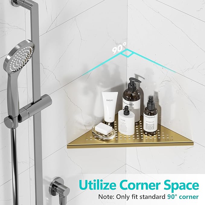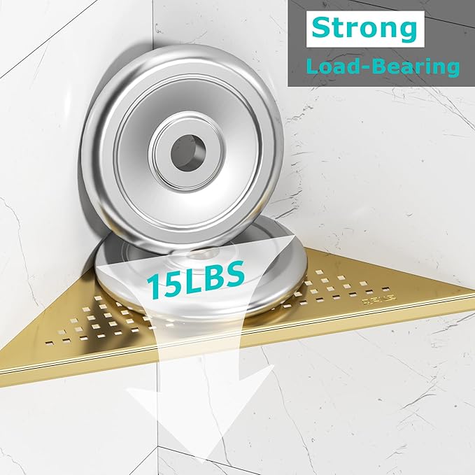 - 【Space Saving Wall Mount Corner Shelf】The triangle shaped shelf can optimize space and avoid sharp edges in your bathroom. Large capacity for holding shampoos, soaps, and many other bathroom essentials.