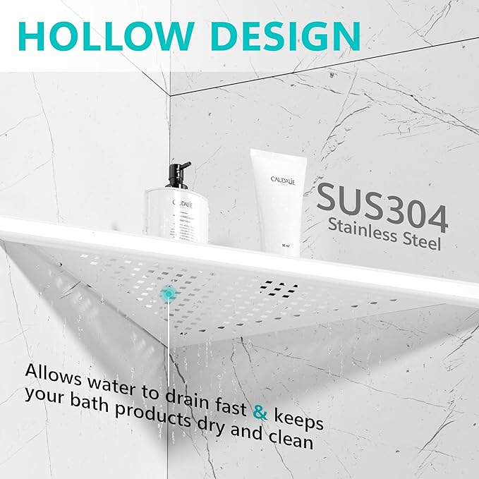 - 【High-Quality SUS304 Stainless Steel】Qeke shower shelf caddy is made of SUS304 stainless steel with matte white surface, which is anti-corrosion and anti-rust, durable. Suitable for use in wet shower environment.