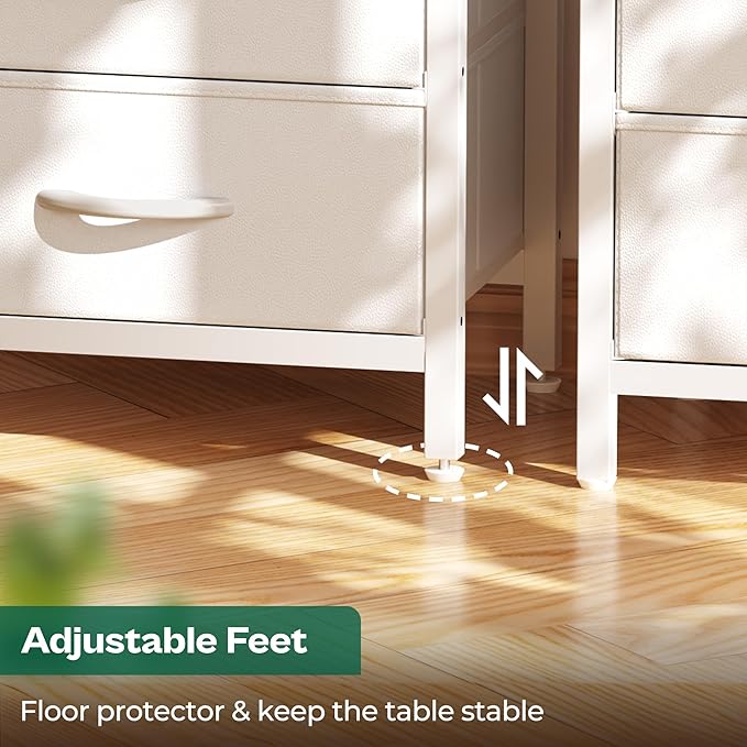 - 【Solid Structure】Crafted with P2 particle board, reinforced by a robust powder-coated steel frame, 2 durable non-woven fabric drawers, and balanced by 4 adjustable feet, this tall nightstand will serve a long time