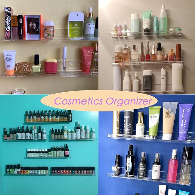 Acrylic Wall Shelf -3 Size&2Color (Clear- 4P, 1.6X15 inches)