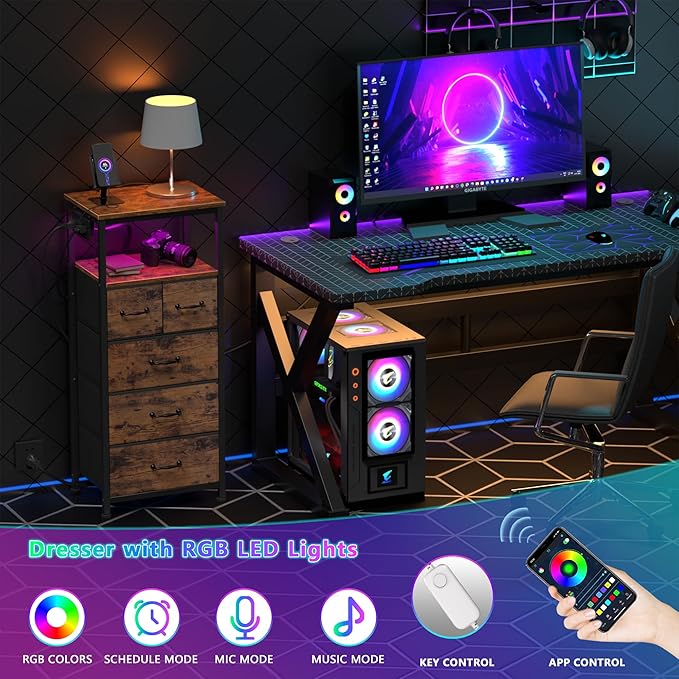 - 【Smart RGB LED】The storage organizer unit is equipped with RGB light strip, which can be controlled by button or mobile app. There are more than 60,000 colors of LED lights to choose from. There are also modes such as Style Mode, Music Mode, Microphone Mode and Timer Function for you to explore! You can freely set the brightness, color, mode that best suits your mood and environment, making the led dresser a great addition to your bedroom.