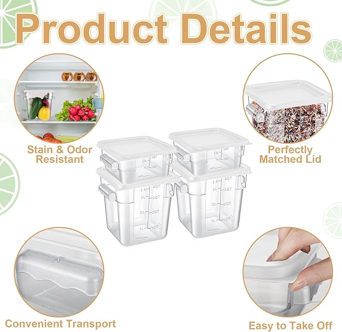 - Clear and Practical: the appearance of the restaurant food storage containers is clear, so you don't have to open the container, you can just see what's inside from the outside; And they are designed with the scale, will bring you convenience
