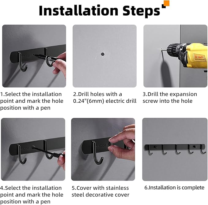 - Durable & Rust-proof - Made of strengthened SUS 304 stainless steel, this wall hook rack is built to last long, without deformation or rust