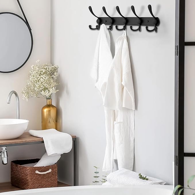 - Dimensions - 16" (L) X 5" (W) X 2" (D), 5 Triple-headed Hooks per unit, ideal for hanging coats, hats, towels, scarfs, robes for entryway, bedroom , kitchen, bathroom.