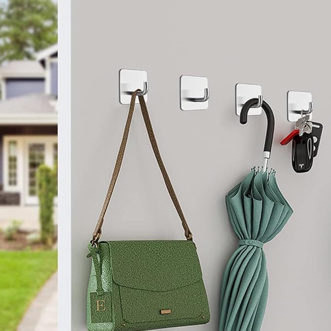 - STYLISH DESIGN: Adhesive hooks made of classic square base and sturdy extended straight handle. The end is properly curved to hang more items and effectively prevent items from falling off. Moreover, shower hooks have smooth edges to prevent scratching items or fingers. You can use it to organize and decorate your home.