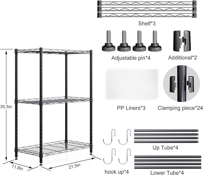 - 【Perfect for Small Storage】This wire shelf Without taking up too much space, its perfect size of 21.5 "L x 11.8 "W x 35.5 "H makes it more suitable for small place storage. (This product includes hooks and shelf liners)