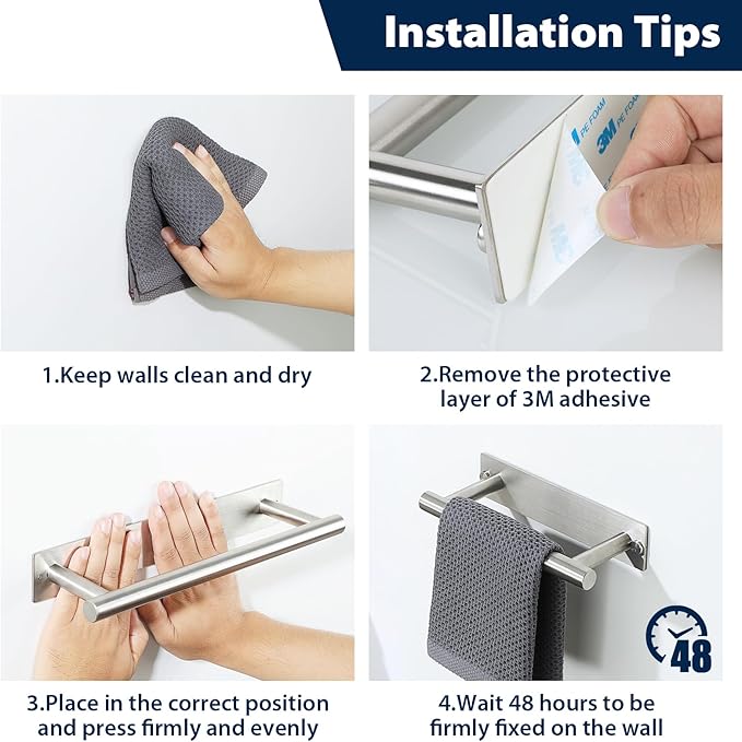 - 【2 Mounting Methods Available】- The towel bar adopts two mounting methods: self-adhesive and drilling mount, you can choose to install it with the most suitable installation method for you to solve the installation trouble.