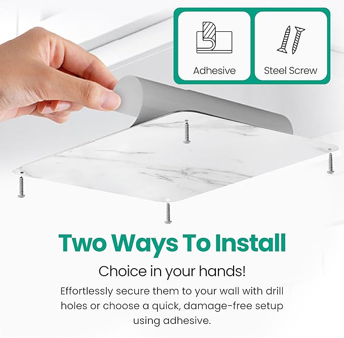 9 inches x 6.5 inches Stainless Steel Plate for Magnets, 3M Adhesive Back, Mounting Screws, Ideal for Magnetic Shelf, Spice Holders, Fridge Magnets. Mount Anywhere! (Carrara Marble, 1 PACK)